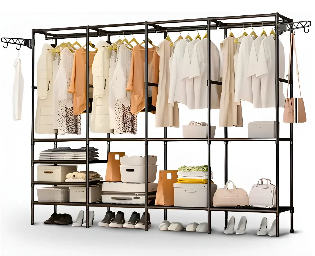 Um armário permanente, de MDF ou madeira, não me permitiria mover para onde quisesse, nem montado, nem ficar desmontando e montando novamente… Precisava de algo relativamente pequeno, com certeza leve, que pudesse ir se encaixando no caos, e ele parecia perfeito!